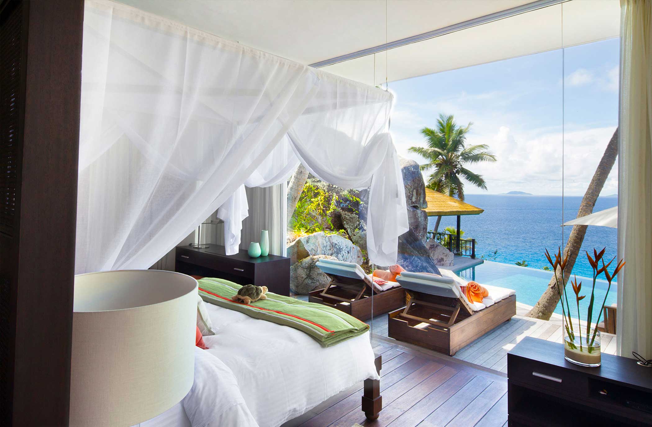 Fregate Island Private состоит всего из 16 вилл и роскошной резиденции, которую наверняка предпочтут гости, привыкшие к эксклюзивному проживанию. Построенные из красного дерева и африканского тика бунгало оформлены с безупречным вкусом. Тайский шелк и египетский хлопок, деревянная отделка и восточный антиквариат - все это создает аутентичную, ни на что не похожую атмосферу.