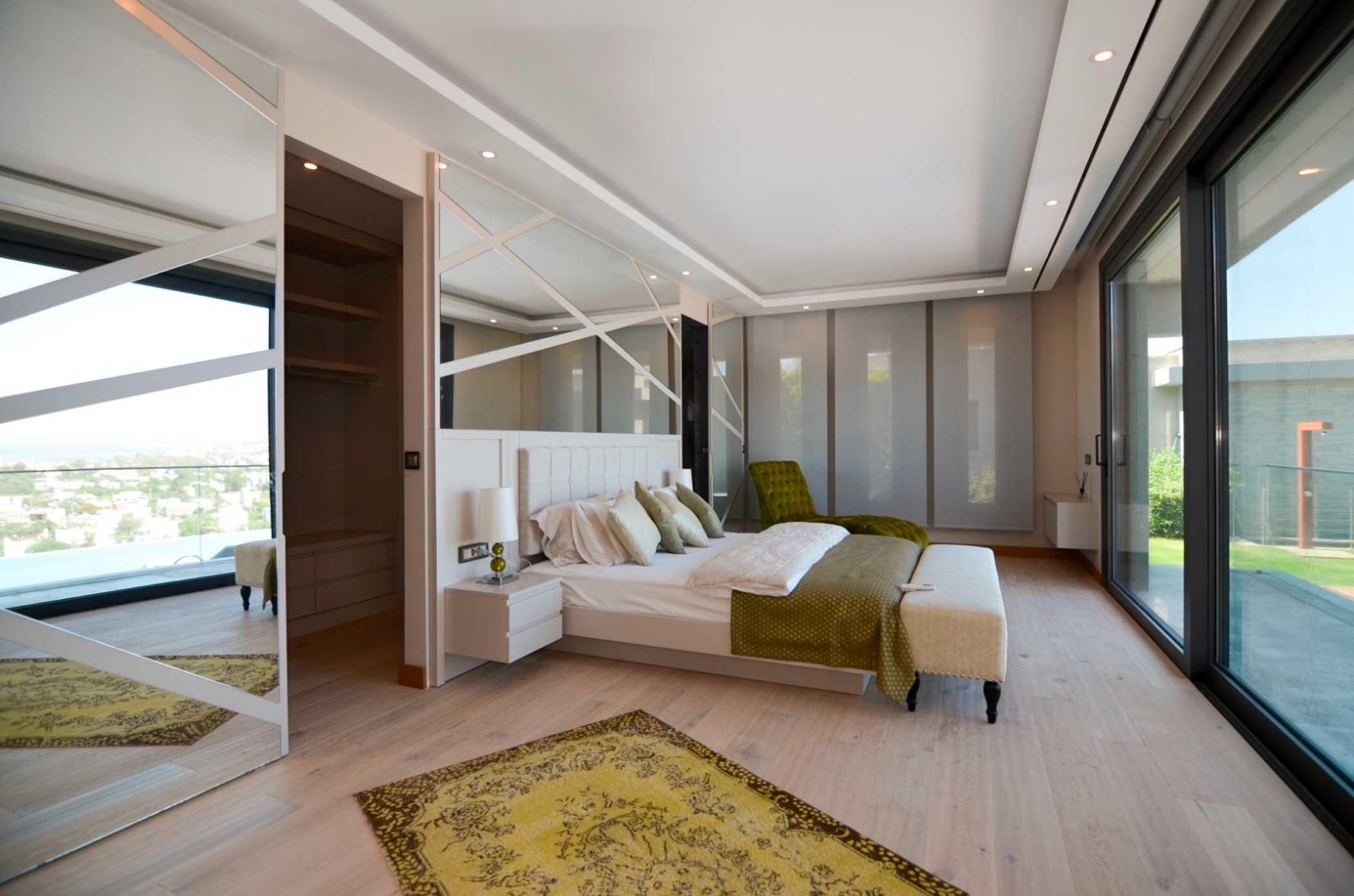 Эта вилла идеально сочетает в себе уединение и близость к бурлящей жизни приморского курорта: из окон открывается вид на Ялыкавак, а поездка до центра Бодрума займет не более 20 минут. Современный дизайн с открытыми пространствами и геометричными формами оживляют произведения искусства и изысканные детали интерьера. Собственная сауна и турецкая баня позволят избавиться от напряжения, а принять солнечную ванну можно на террасе у бассейна, окруженного тенистыми деревьями.