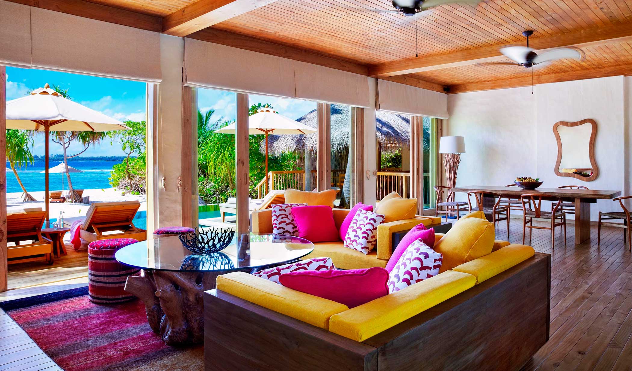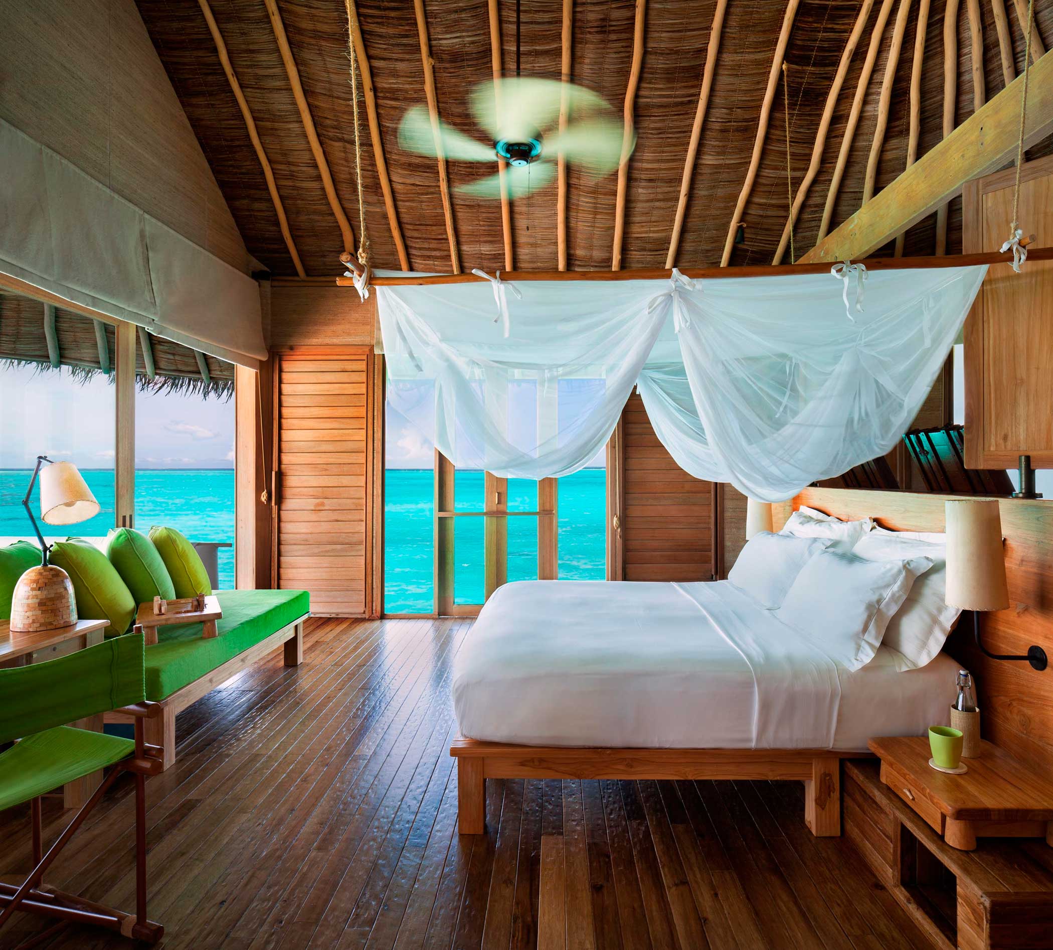 Эксклюзивный отель, находящийся на атолле Лааму, состоит из 94 роскошных вилл. Просторные виллы, построенные на пляже или возвышающиеся на сваях над водой, располагают к комфортному отдыху. Придерживаясь философии бережного отношения к окружающей среде, отель помогает защищать природное наследие, сохраняя первозданную красоту своих уединённых пляжей.